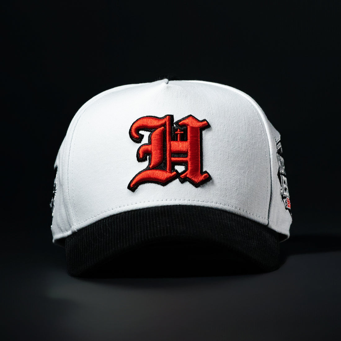 White & Red & Black Sueded Brim Hope Hat