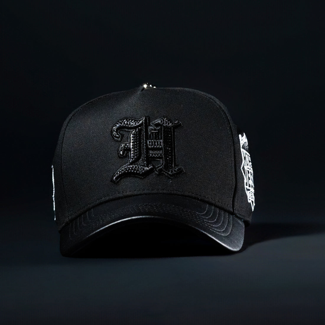 All Black Leather Brim Rhine Stone Hat