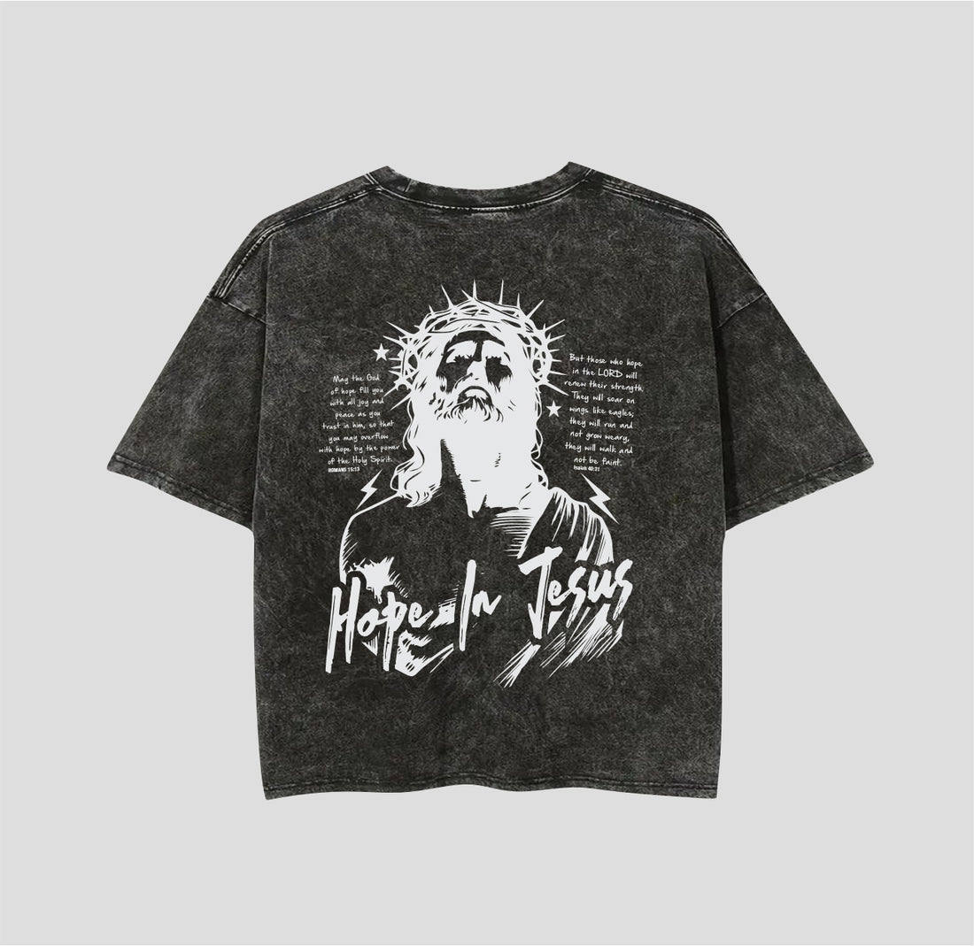 Black Washed Hope In Jesus Shirt (Oversized Fit)